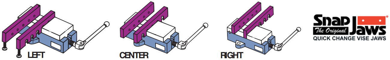 Extension jaws are ideal for holding oversize parts, castings and plates. This unique design allows extended clamping on the right, left, and middle. Jaws can be supported with a support stud when doing heavy cutting, drilling or when vibration is a problem. To order any of these items enter the Part Number into the search bar above. (This will take you to the product page where you can add the item to the shopping cart)