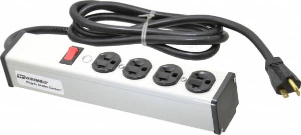 Wiremold - 4 Outlets, 120 Volts, 20 Amps, 6' Cord, Power Outlet Strip - Free Hanging Mount, 5-20 NEMA Configuration, 10-3/4" Strip, cULus Listed