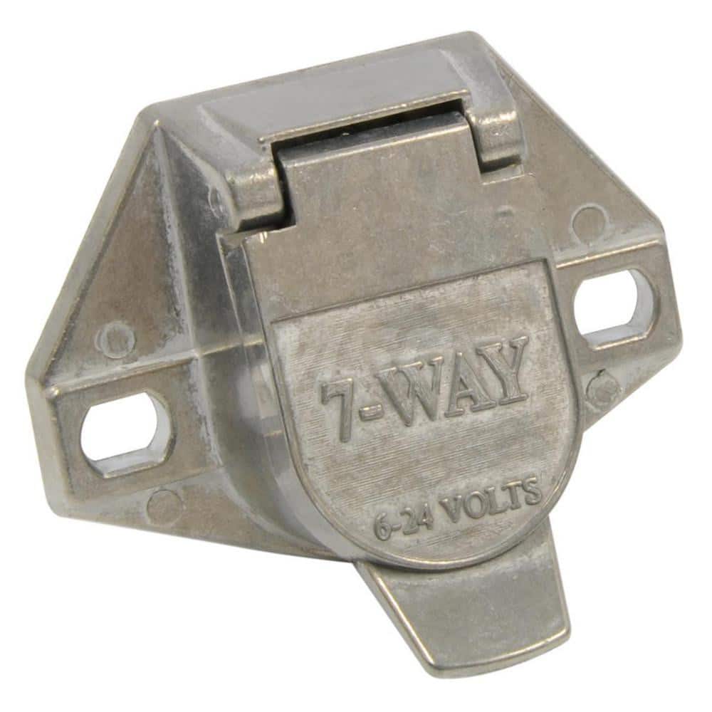 Automotive Wiring Connectors; Type: 7-Way Connector; Fits Vehicle Make: All Makes & Models; Description: 7-Pole Trailer Electrical Socket; Corrosion Resistant w/Die-Cast Construction; Self-Grounding w/Solid Brass Contact Pins; Spring Loaded Cover; AcceptS